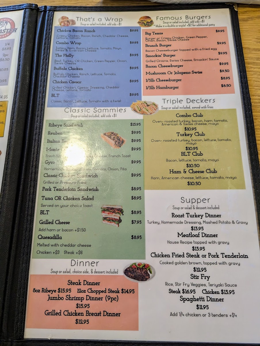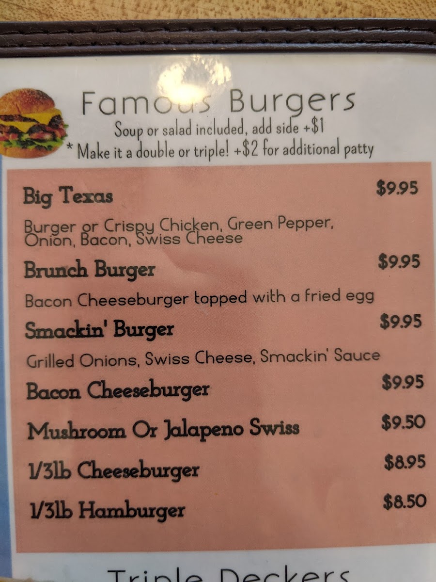 2 1/3lb Angus patty laid into buttered bun with American Cheese. Homemade soup of the day included.